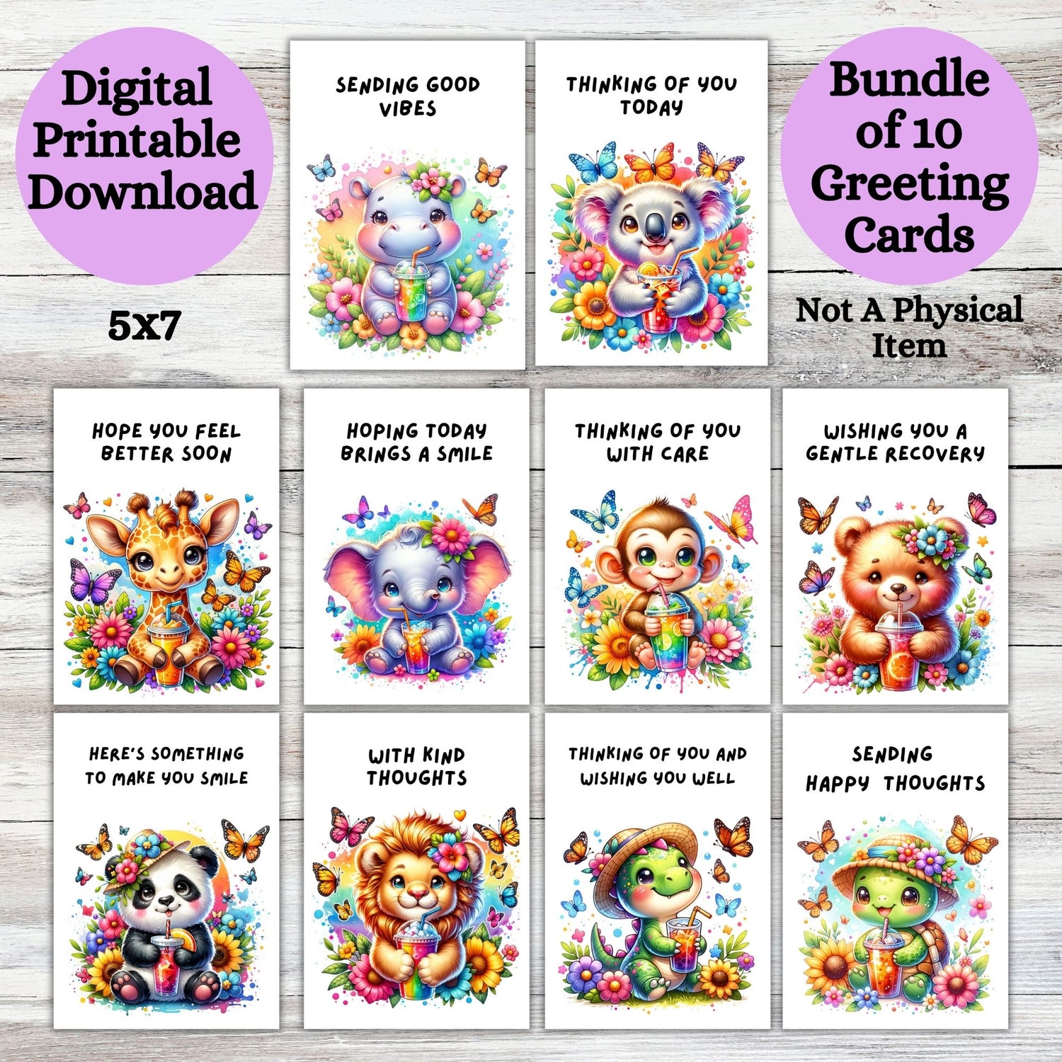 Animal Friends Printable Digital Greeting Cards Bundle Set