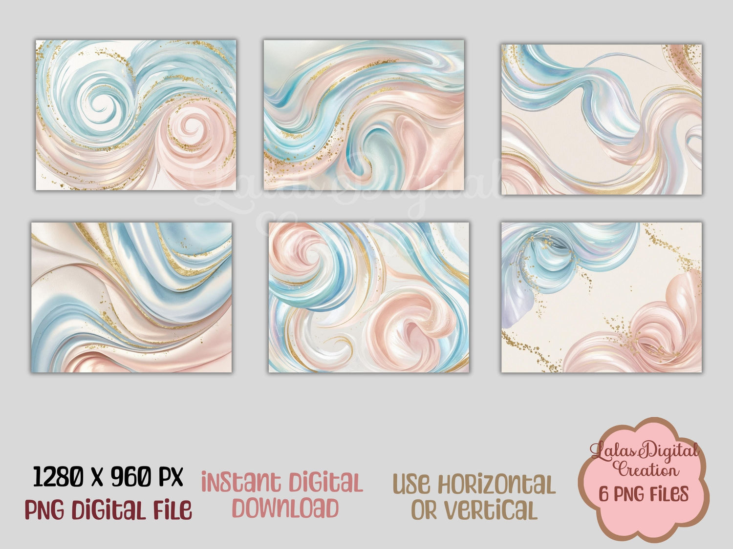 Blush Iridescent Watercolor Swirls Digital Pattern Paper Bundle