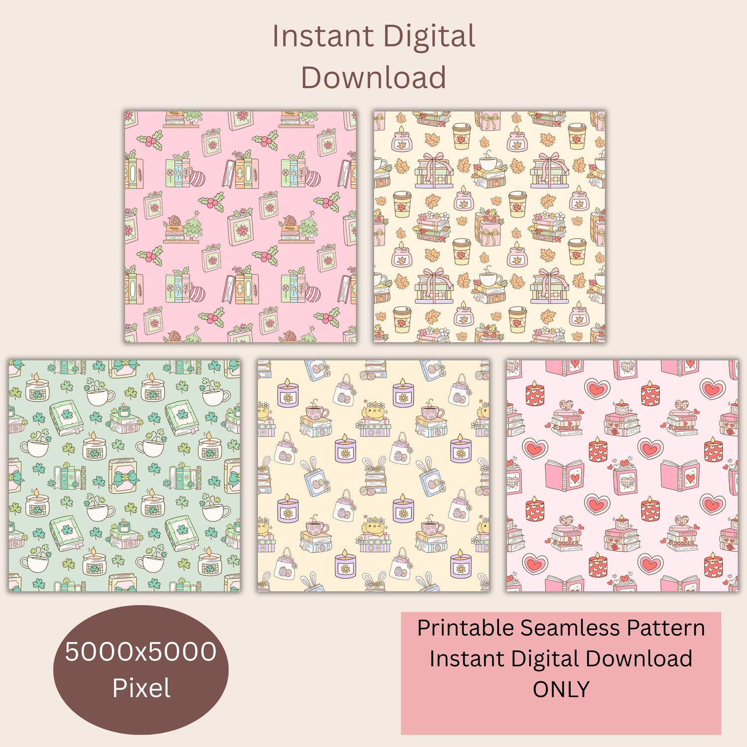 Book Theme Seamless Repeating Pattern Paper Bundle Set