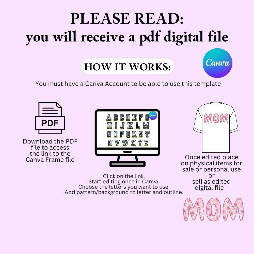 Whether you're designing for a classroom, shop launch, or seasonal drop, this alphabet frame adds personality and flexibility to your Canva projects!