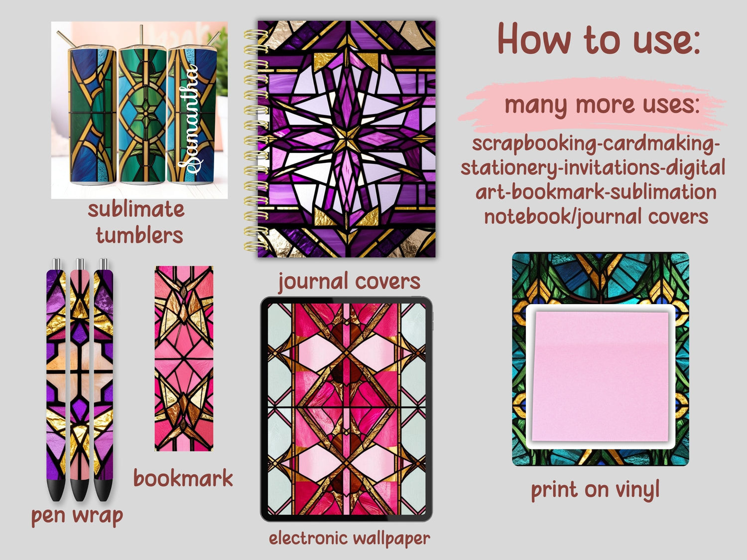 Geometric Stained Glass Digital Pattern Paper Bundle