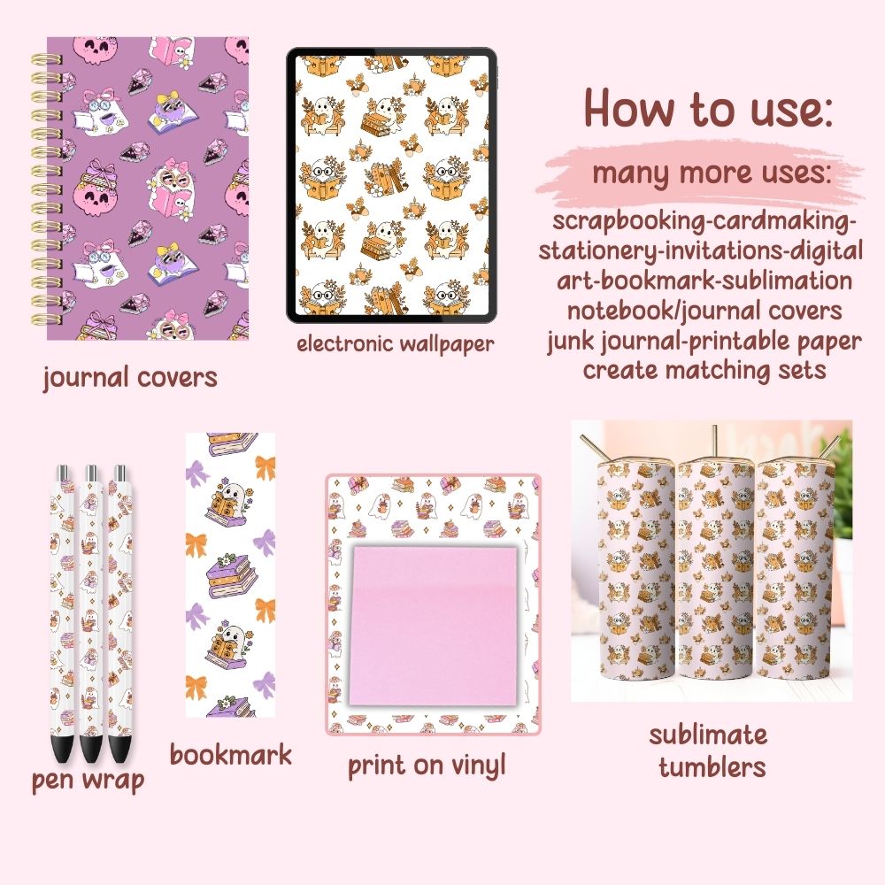 Ghost Book Reader Seamless Digital Pattern Paper Bundle