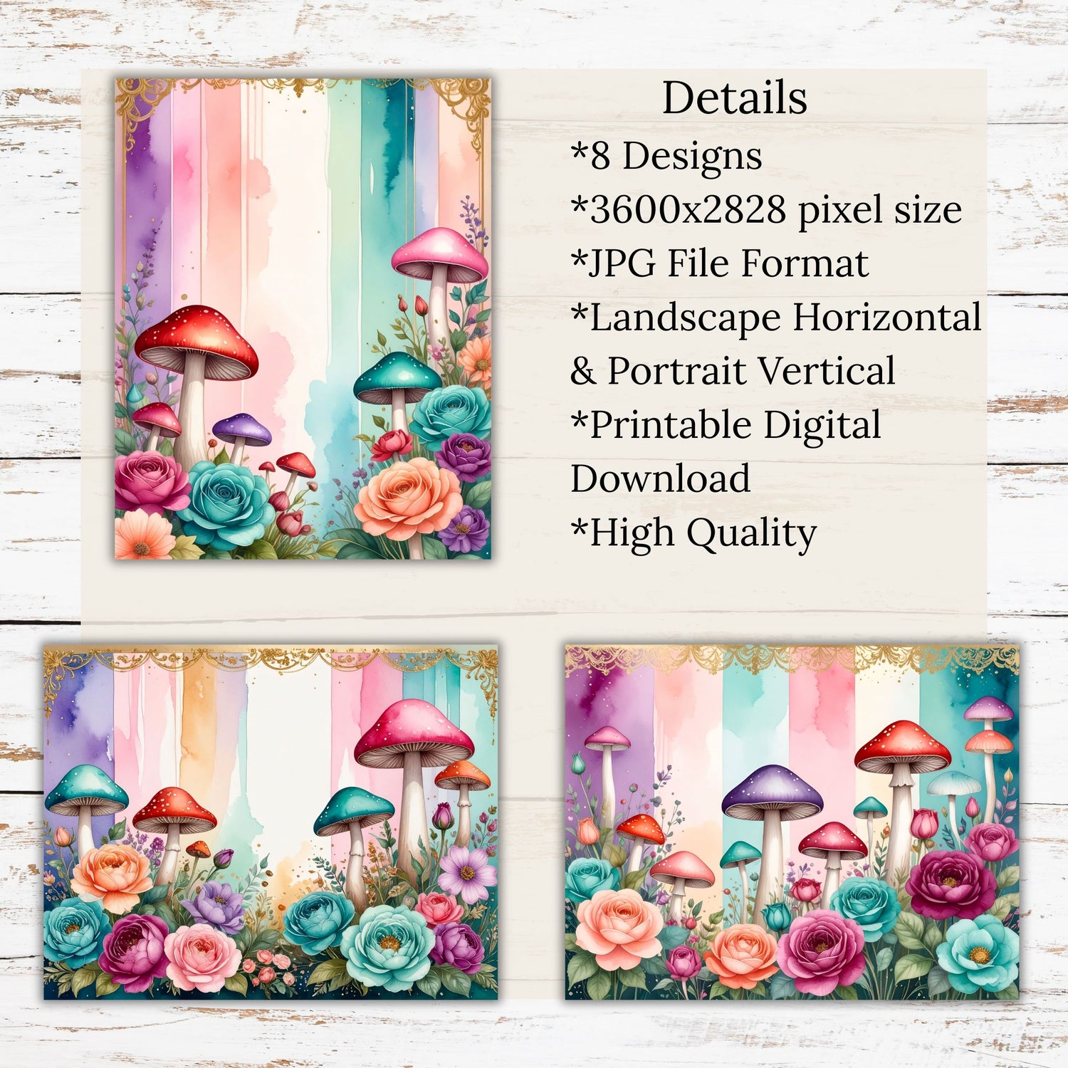 Multi Mushroom brushstroke Digital Paper Pack Bundle