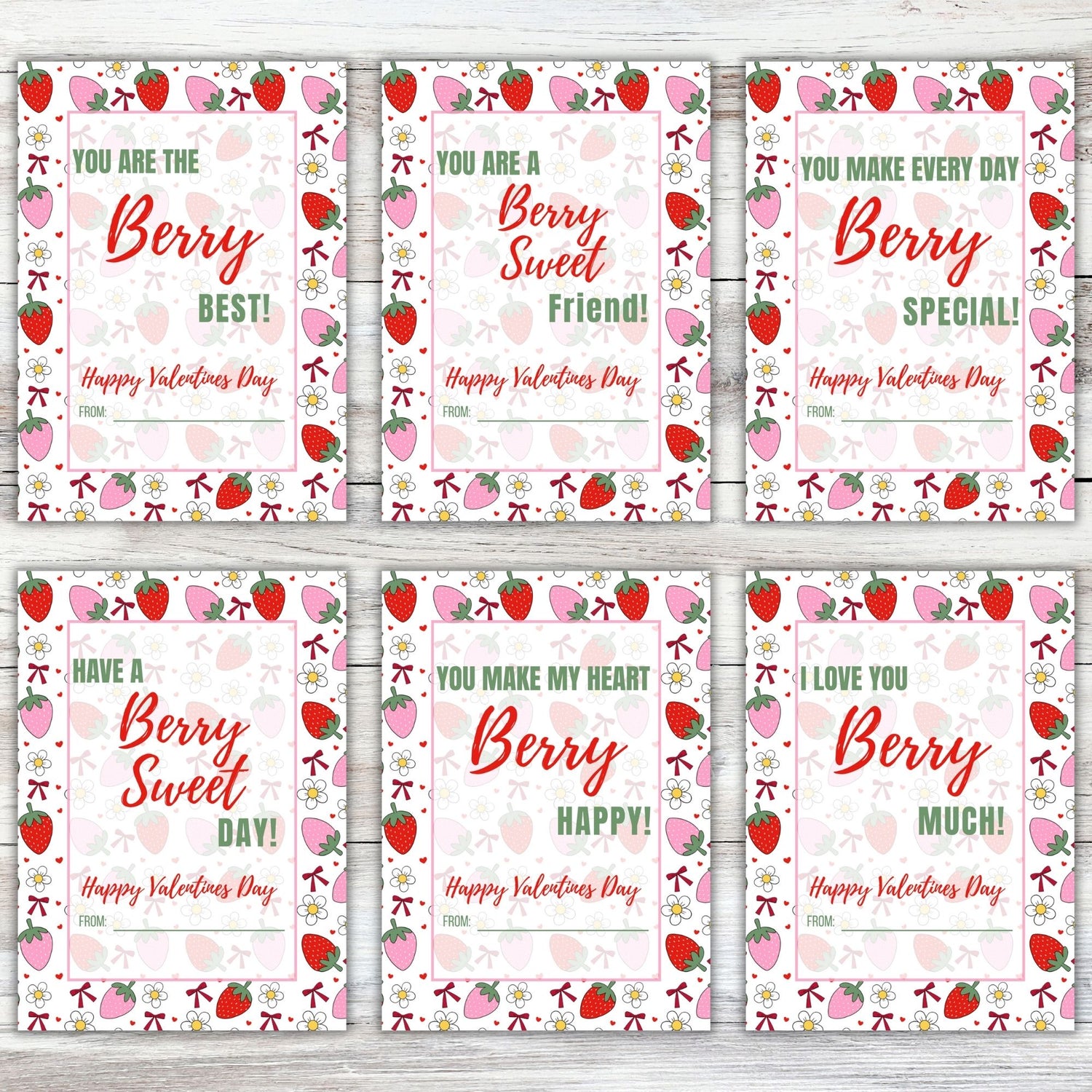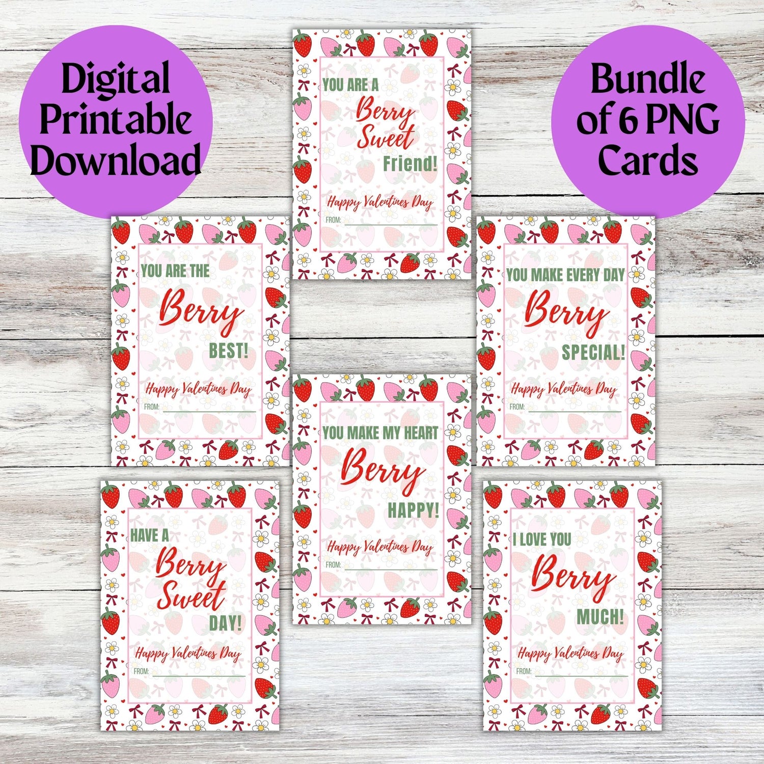 Multi Strawberry Valentines Day Printable Digital Card Bundle