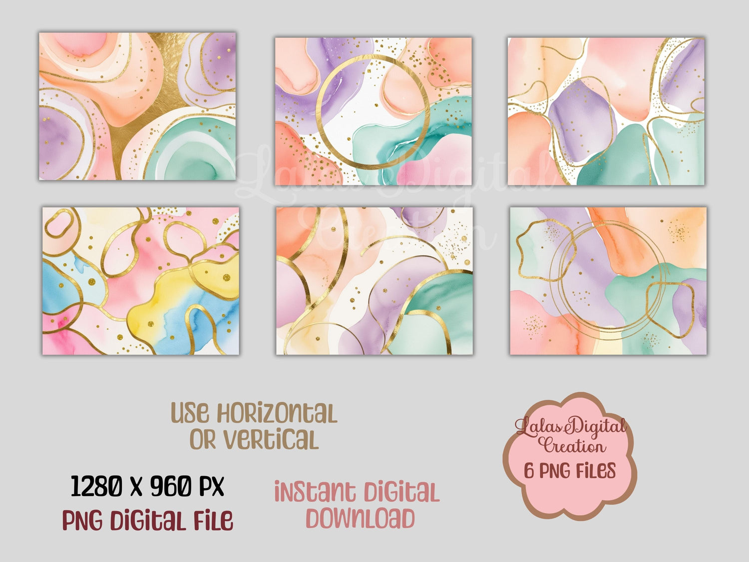 Pastel Gradient Watercolor Gold Digital Pattern Paper Bundle