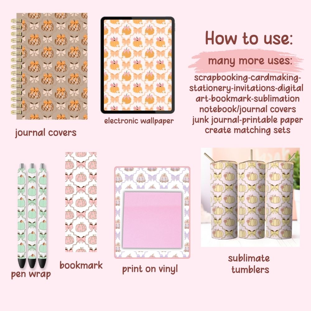 Pumpkin Bow Frame Seamless Digital Pattern Paper Bundle