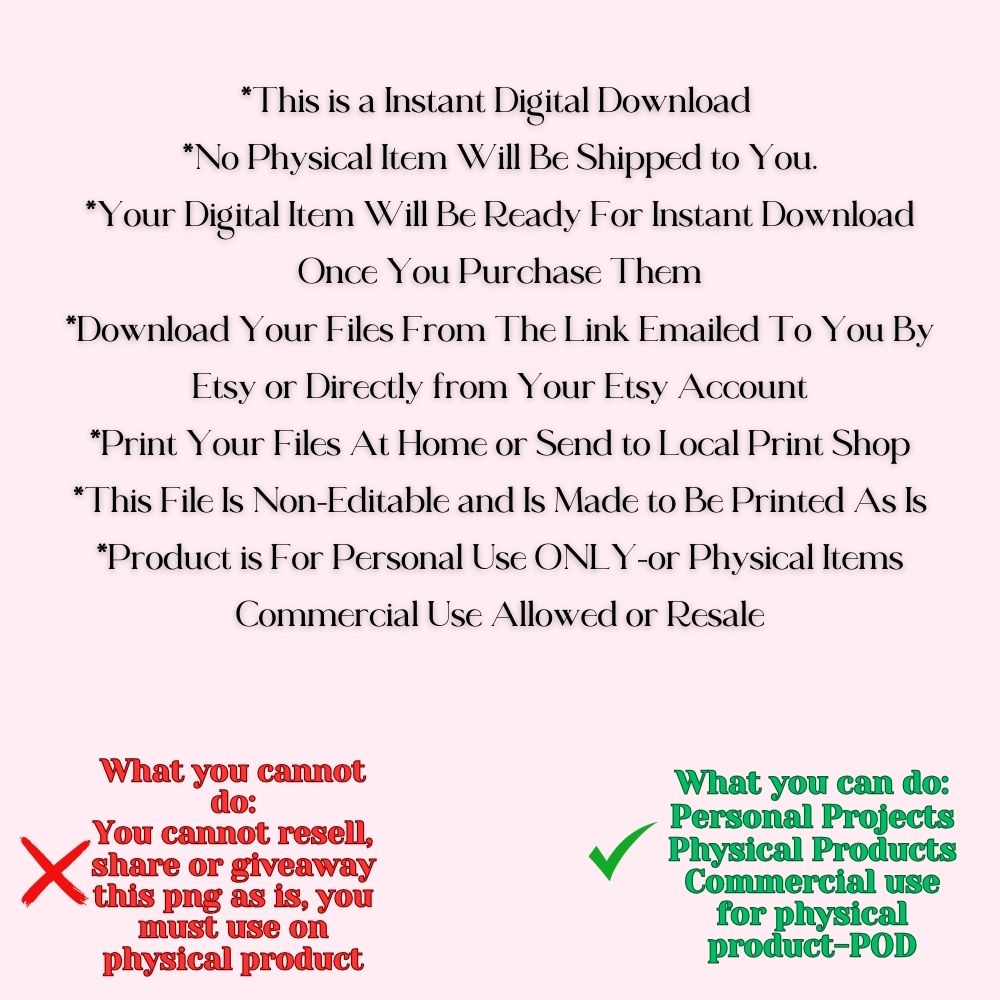 *Your Digital Item Will Be Ready For Instant Download Once You Purchase Them
