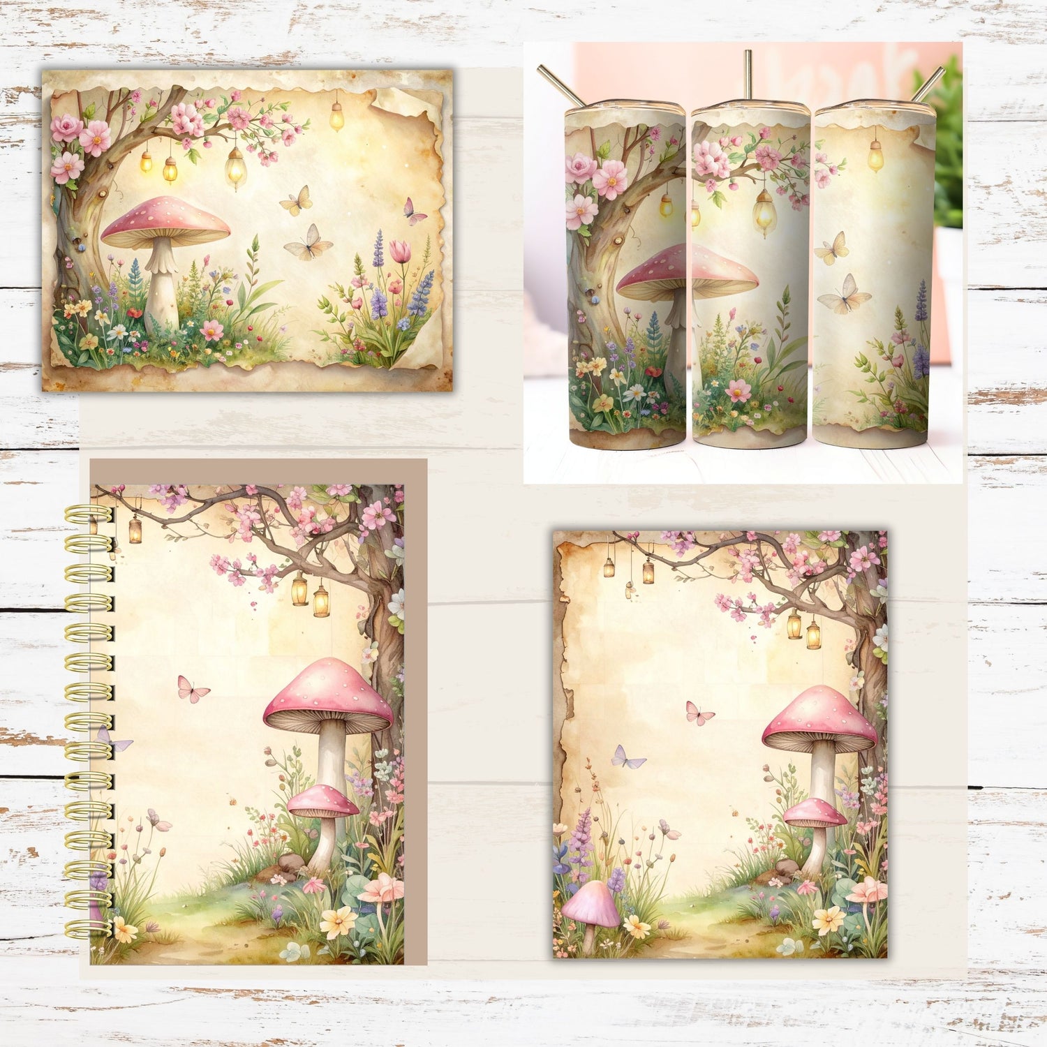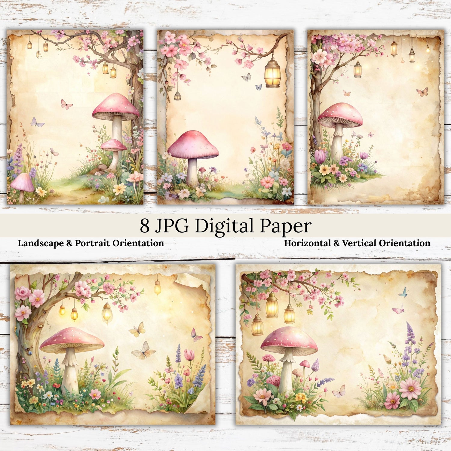 Vintage Pink Mushroom Digital Paper Pack Bundle