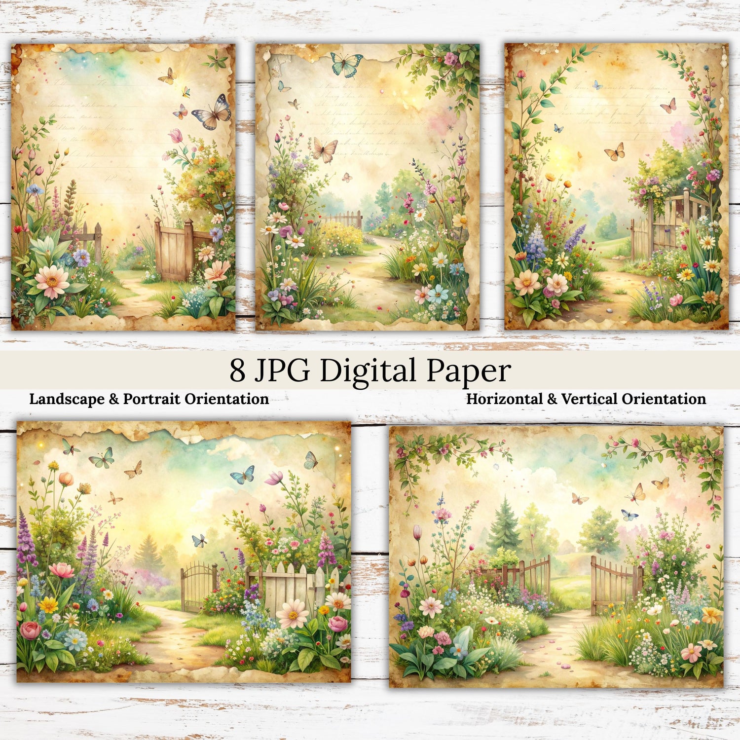 Whimsical Spring Garden Digital Paper Pack Bundle